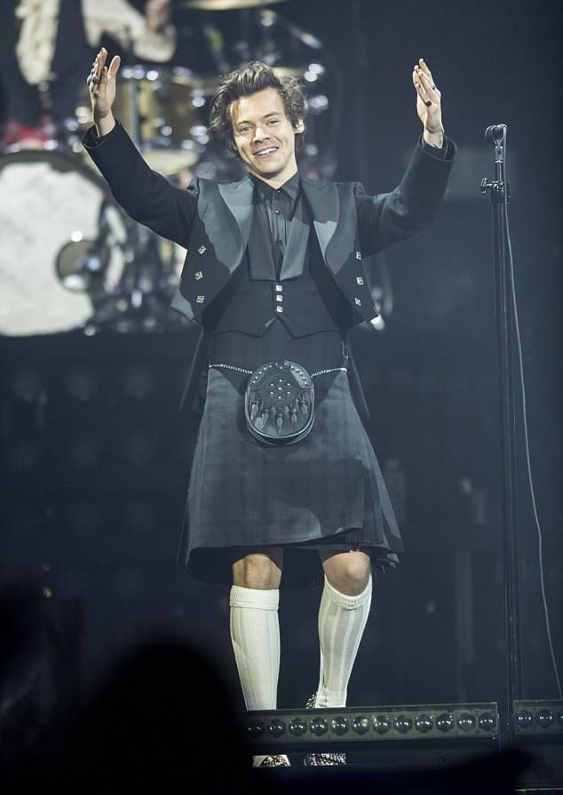 Before the era of suits began, Harry would walk out on stage in something a lot more subtle. Usually a pain of skinny jean and some kind of t-shirt (usually a white one). These looks went together with those of his One Direction band mates much better than any of his current choices would. On occasion though Harry would release his inner fashion icon and pair those simple looks with a statement piece. One of the most iconic items was a pair of gold, sparkly ankle boots.