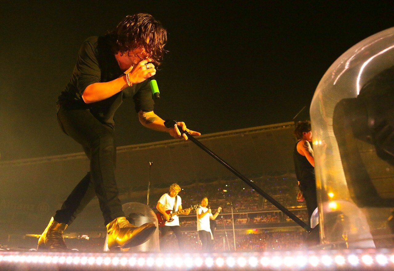 A few times during the last year of One Direction’s On The Road Again tour, Harry would break out these boots. They would immediately stepped up Harry’s tour fashion game, especially when paired with an all black look, like the picture at the start of this post from their Sydney, Australia show. Fans were quickly drawn to the boots and were always so excited when Harry would wear them onstage. Who knew what kind of iconic fashion looks were just around the corner.